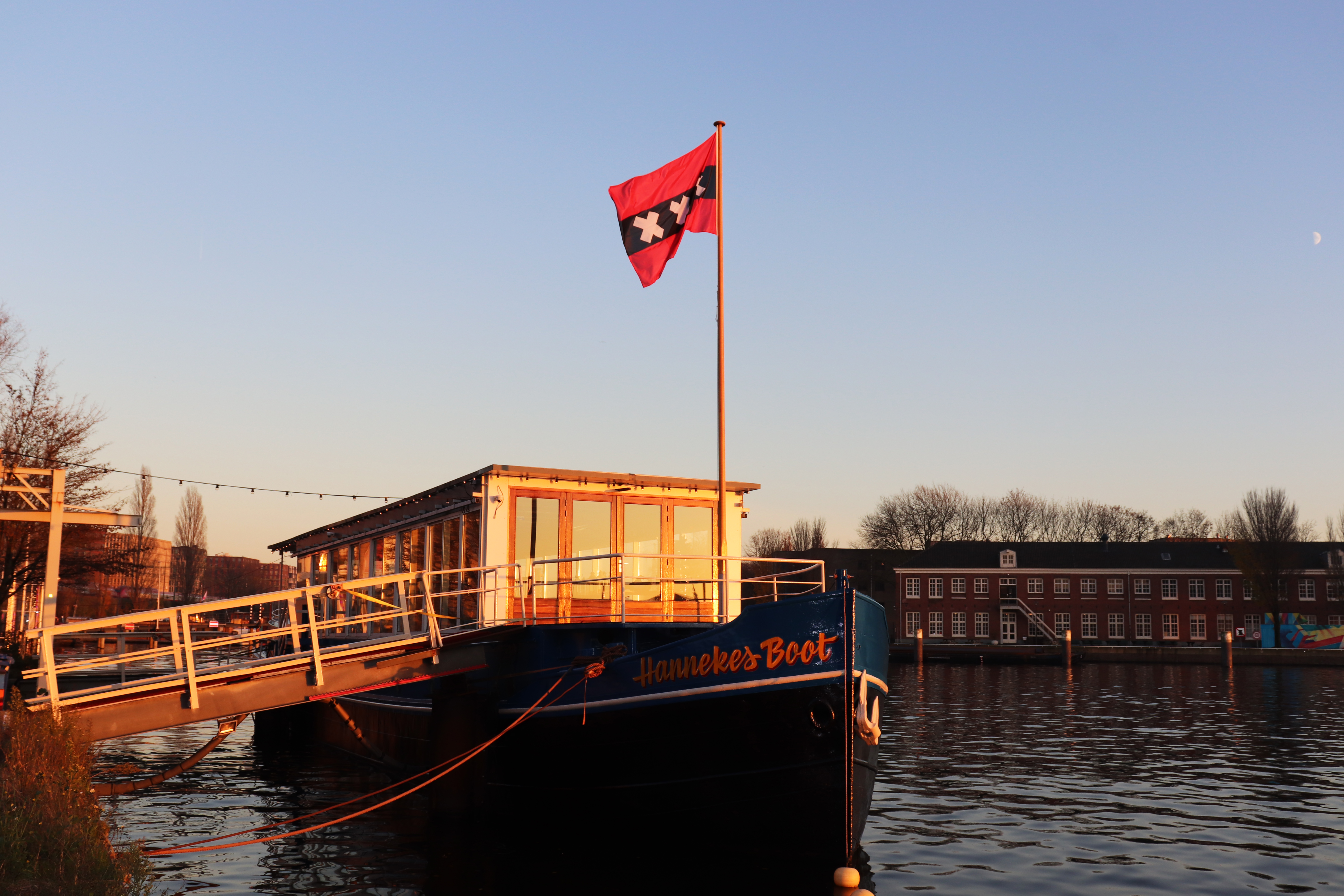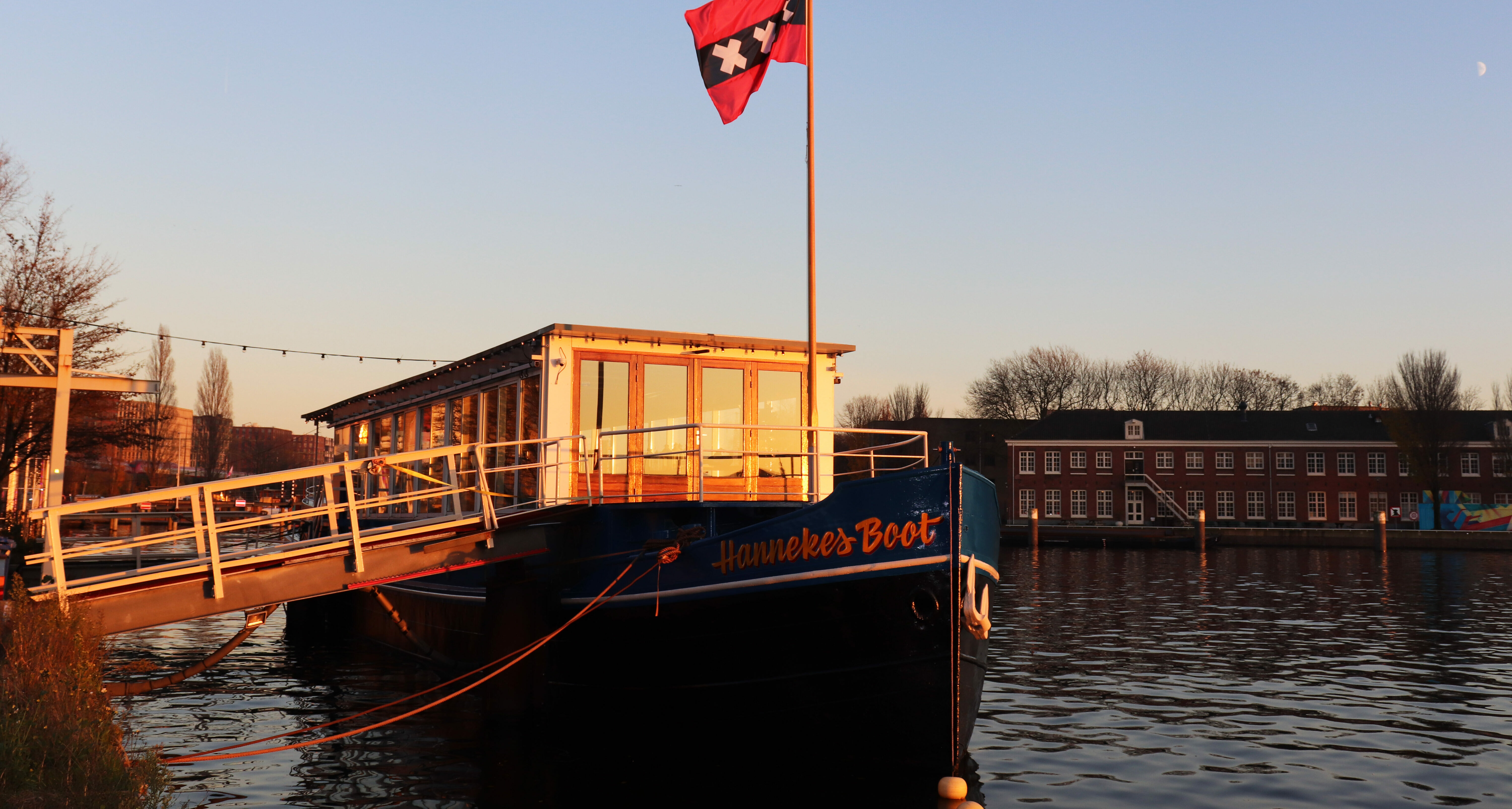 Natuurlijk kom je met de boot naar Hanneke! Vaar langs NEMO en je ziet Hannekes haventje al liggen; makkelijk aanmeren aan het Oosterdok. GPS: 52°22’34.51″N ; 4°54’42.64″E .